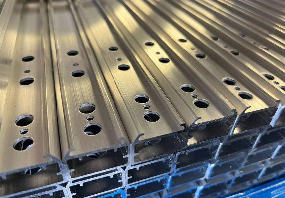 With tolerances from ± 0.10mm, we use aluminium punching to fulfil orders for profiles used in applications such as furniture systems, wall cladding profiles, shelf support rails and parts for the lighting industry.